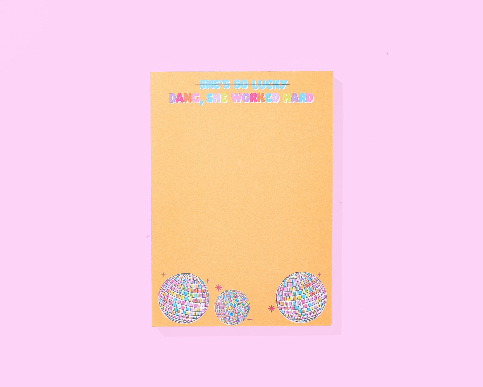 Your customers can keep their notes groovy with the Katie 5x7 Notepad featuring a fun disco ball pattern and a handy magnet on the back. Perfect for sticking on a fridge or workspace, it’s a playful gift idea that adds sparkle to everyday reminders and lists.