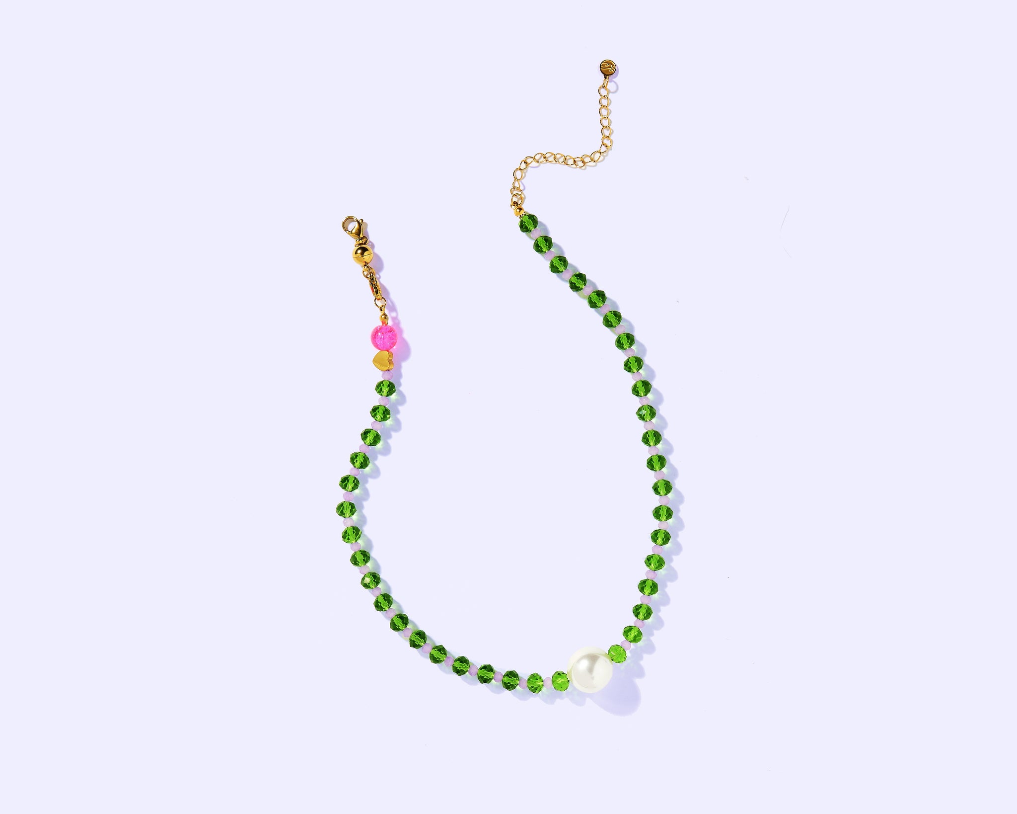 Add a splash of autumn charm with the Annalise Necklace, featuring green and purple beads with a pearl in the center perfect for fall vibes. Its playful layering design adds dimension to any outfit, while the magnetic clasp and extender chain make it easy to wear and adjust. Embrace the season with this fun and versatile accessory!
