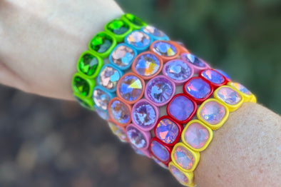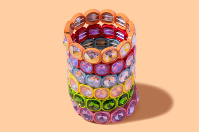 Add a splash of color and charm with the Elise Bracelets, featuring vibrant enamel paired with large, eye-catching stones. Perfect for stacking, these bracelets make a playful gift that brightens any outfit and mood. Mix and match to create your own unique style!