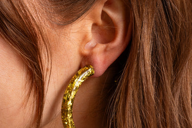 Each confetti piece is meticulously hand-sprinkled. Thanks to this distinctive process, each earring becomes a one-of-a-kind masterpiece, making every piece as unique as the individual you're gifting it to.