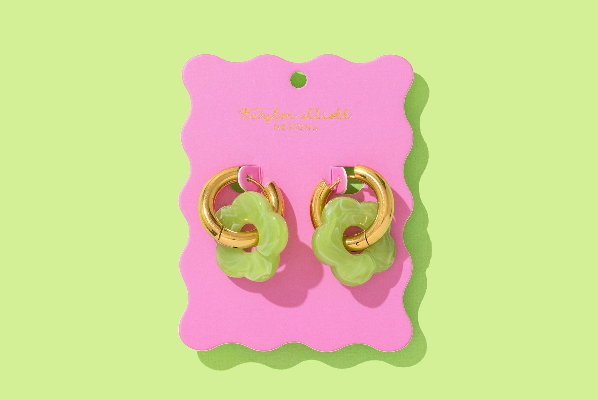 Laurel Green Acrylic Huggie Earrings - Min. 2 (E-46)