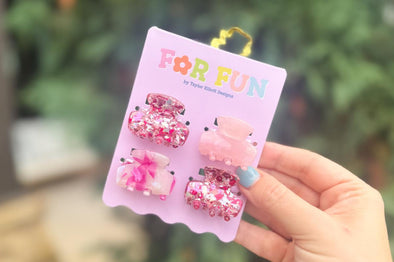 For Fun - Pink Confetti Mini Claw Clips - Min. 4 (CC-06)