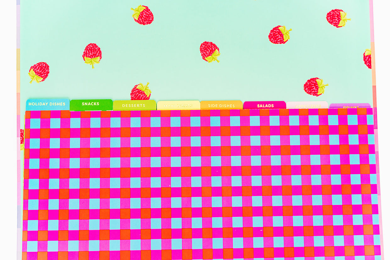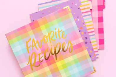 Our colorful Recipe Binder is a wonderful way to show off all of your favorite recipes! With 8 different patterned recipe tabs to keep everything organized, gold accents and gold foiled imprinting, this binder makes the perfect gift!